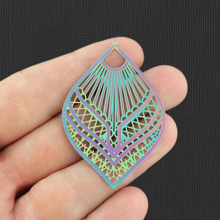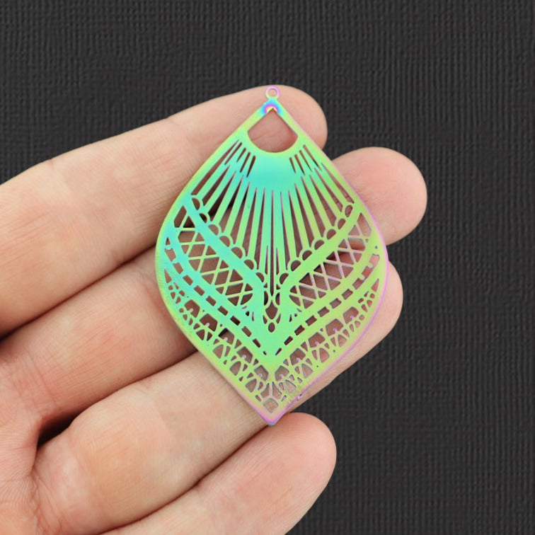 Breloques en acier inoxydable arc-en-ciel électrolytique feuille en filigrane. Parfait pour les bracelets, pendentifs, boucles d'oreilles, tirettes de fermeture éclair, signets et porte-clés !