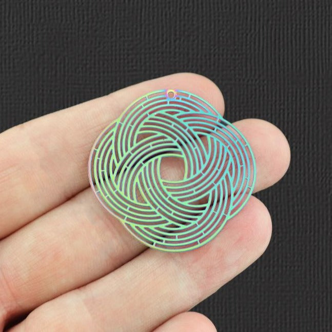 Breloques en acier inoxydable arc-en-ciel galvanisées en filigrane avec nœud celtique. Parfait pour les bracelets, pendentifs, boucles d'oreilles, tirettes de fermeture éclair, signets et porte-clés !