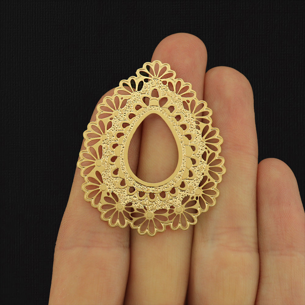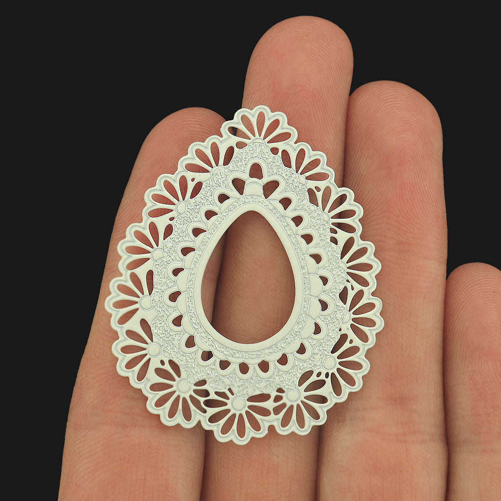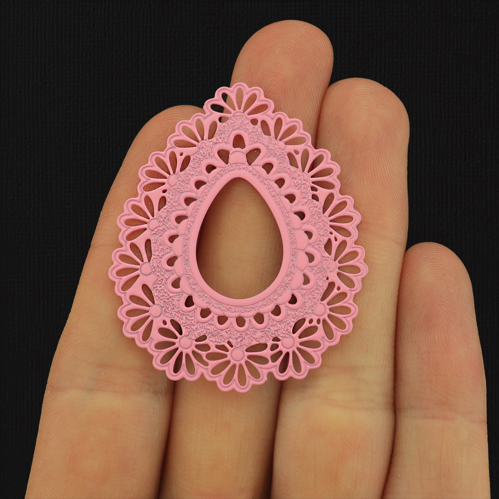 Filigree geometric drop charms, in iron alloy and enamel. Available in 5 different colors - gold, pink, black, white, and red!