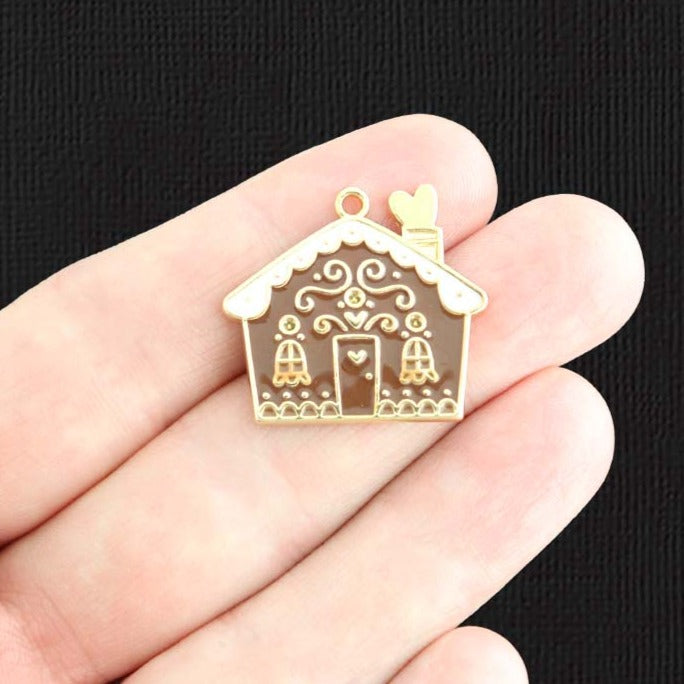 Breloques maison pain d'épices dorées, en alliage de zinc et émail. Parfait pour les bracelets, pendentifs, boucles d'oreilles, tirettes de fermeture éclair, signets et porte-clés !