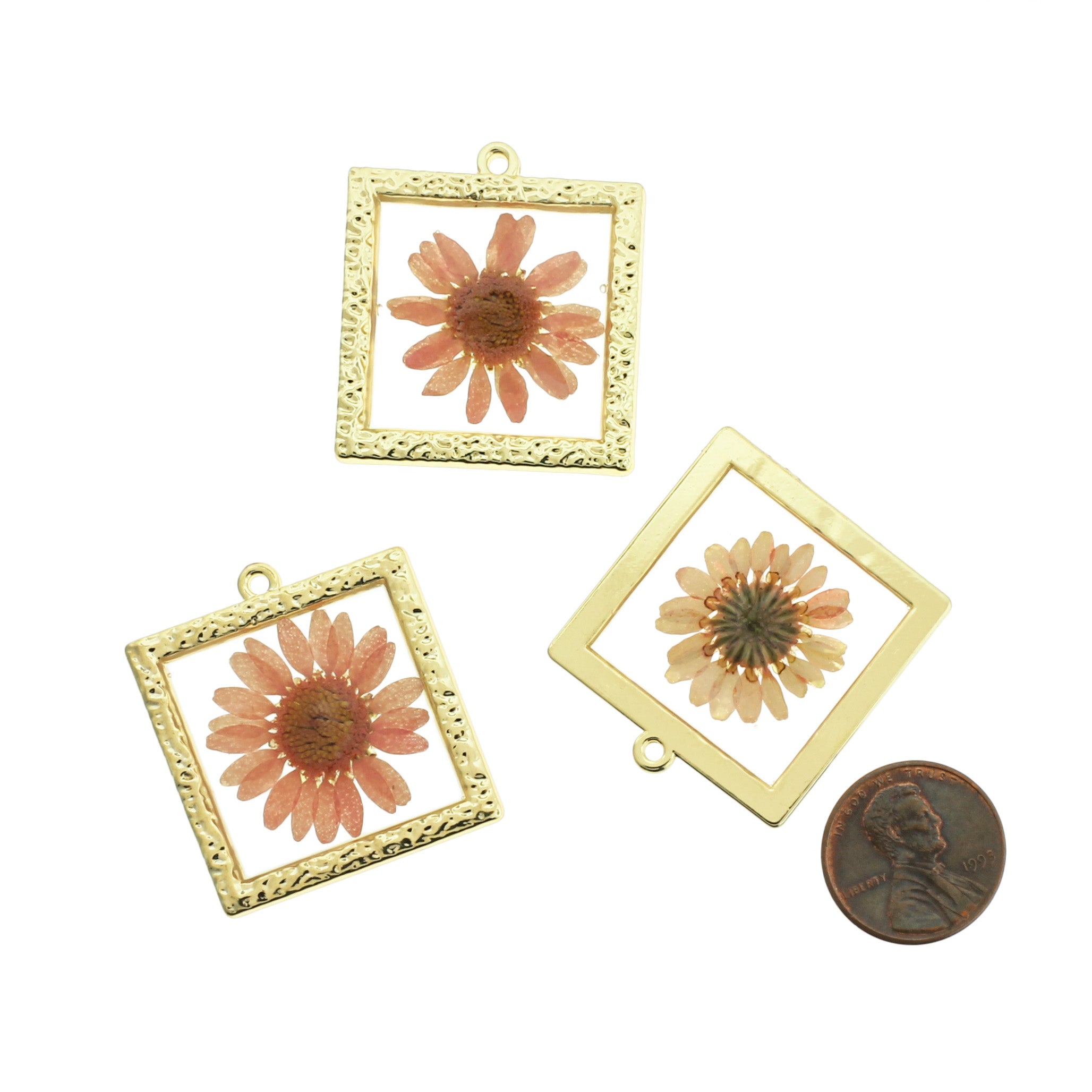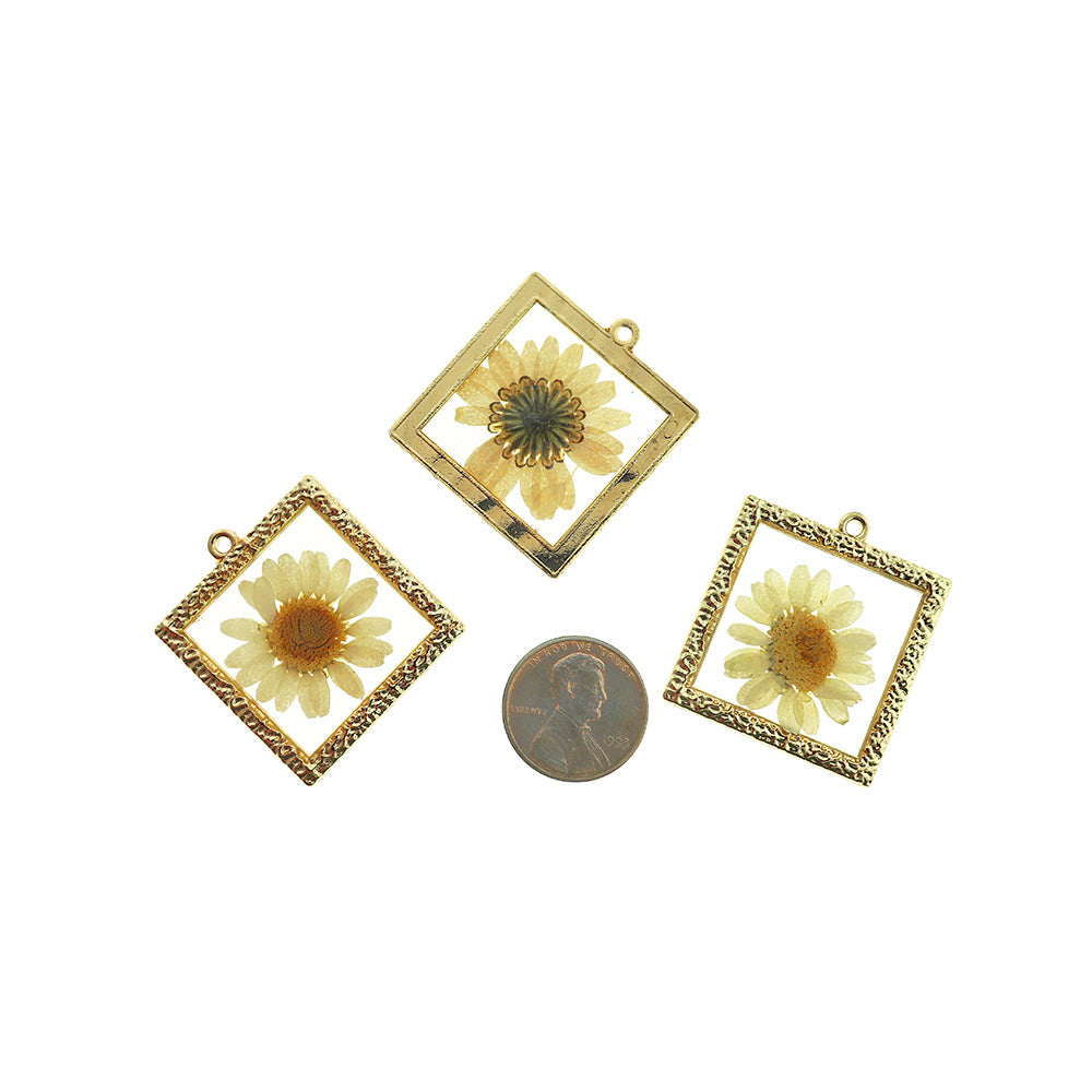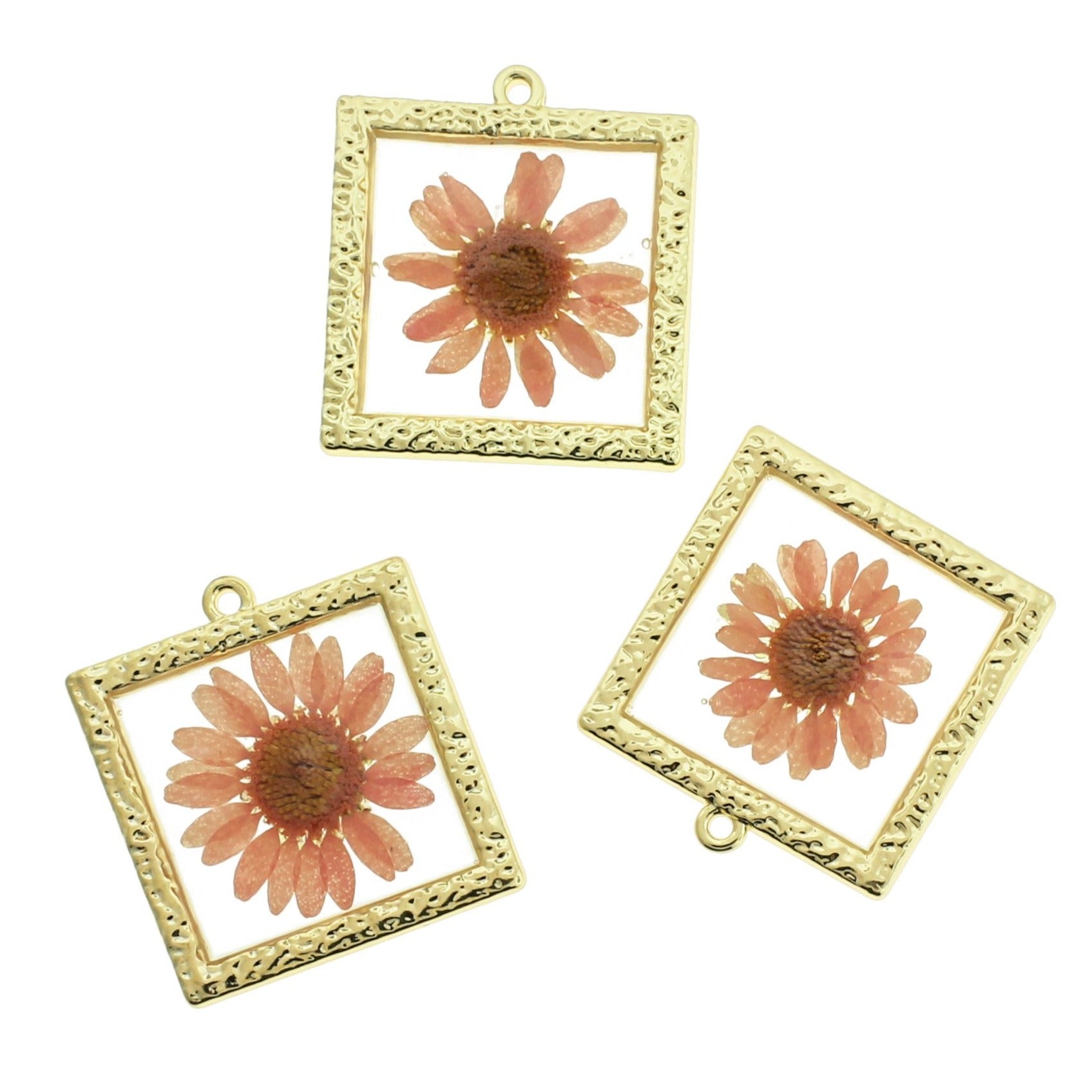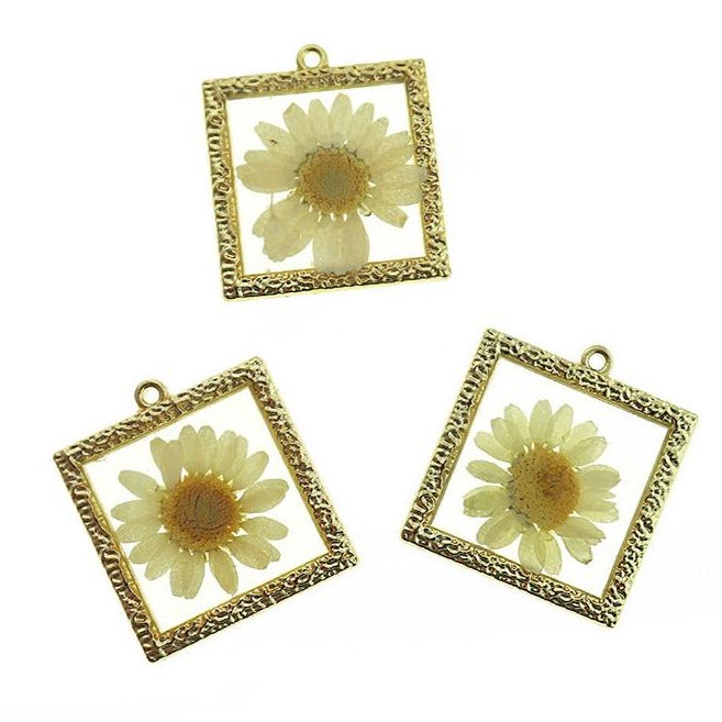 Ensemble de fleurs séchées en résine transparente, dans un cadre carré en alliage de zinc doré. Parfait pour les bracelets, pendentifs, boucles d'oreilles, tirettes de fermeture éclair, signets et porte-clés !