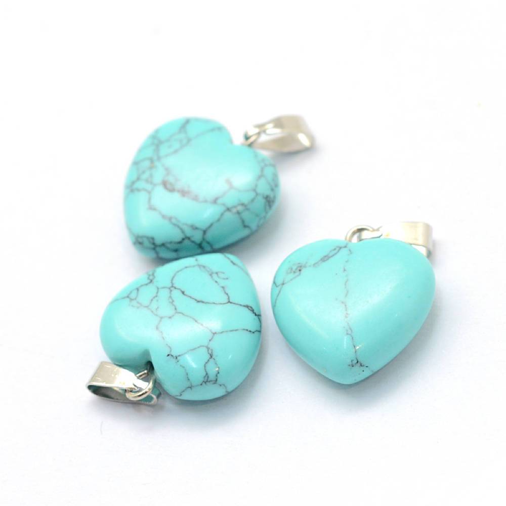 Pendentifs coeur avec bélière argentée attachée, en métal laiton et imitation turquoise. Parfait pour les bracelets, pendentifs, boucles d'oreilles, tirettes de fermeture éclair, signets et porte-clés !
