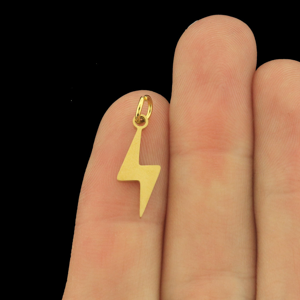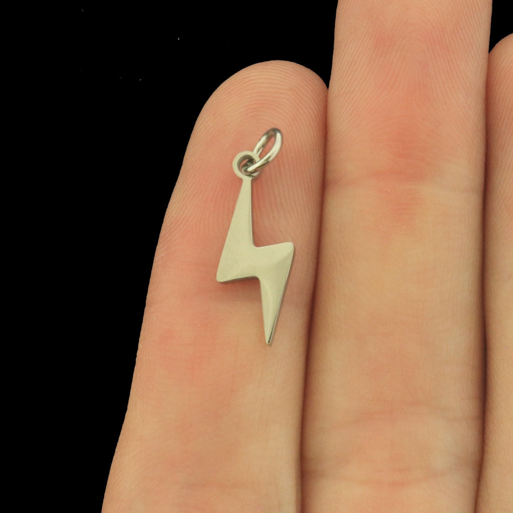 Lightning bolt stainless steel charms. Available in silver or gold tone. Includes an attached jump ring!