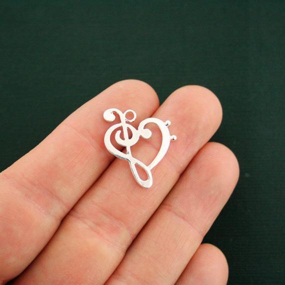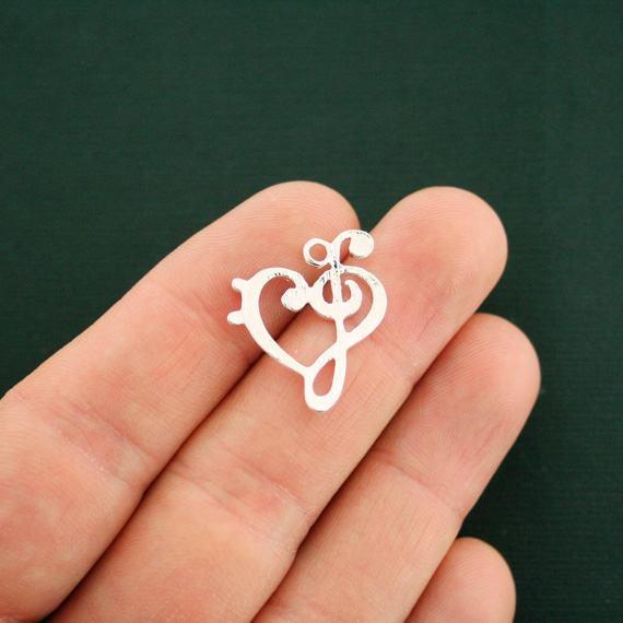 Clé de sol et clé de fa dans un cœur argenté antique, en alliage de zinc. Parfait pour les bracelets, pendentifs, boucles d'oreilles, tirettes de fermeture éclair, signets et porte-clés !
