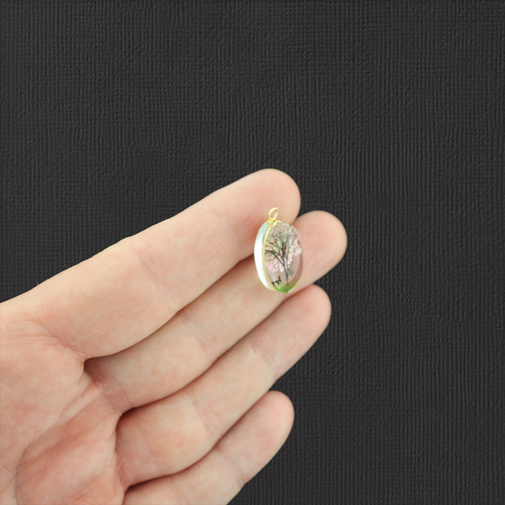 Pendentif arbre de vie en verre, avec de vraies fleurs pressées et une boucle en laiton doré, parfait pour les boucles d'oreilles, les pendentifs et plus encore !