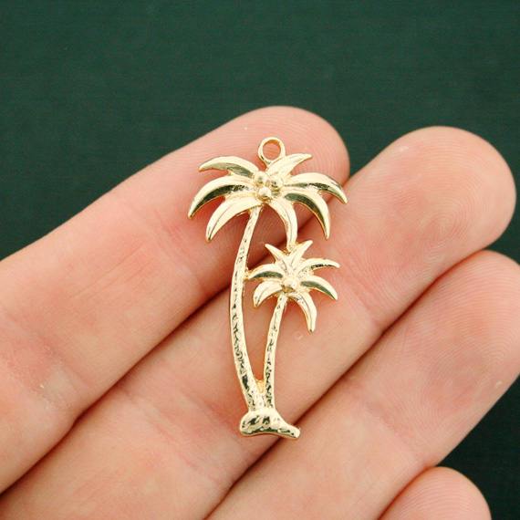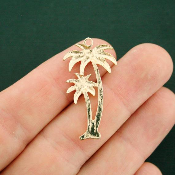 Breloques palmier doré, en alliage de zinc. Parfait pour les bracelets, pendentifs, boucles d'oreilles, tirettes de fermeture éclair, signets et porte-clés !