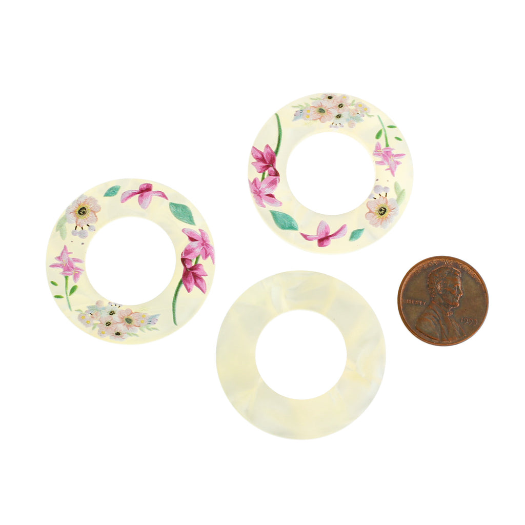 Breloques cercle ouvert fleur rose, en résine. Parfait pour les bracelets, pendentifs, boucles d'oreilles, tirettes de fermeture éclair, signets et porte-clés !