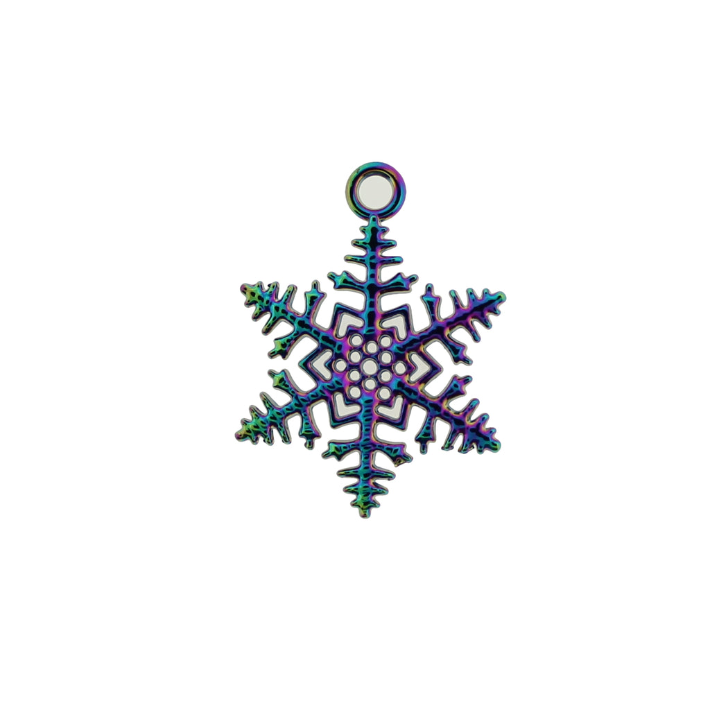 Snow flake rainbow electroplated charms, in a zinc alloy metal.