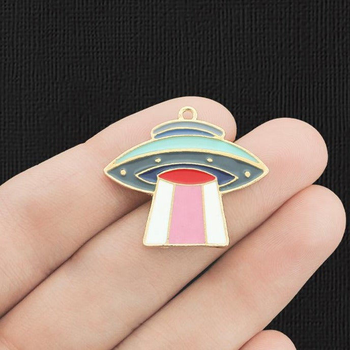 Breloques soucoupe volante, en émail et alliage de zinc. Parfait pour les bracelets, pendentifs, boucles d'oreilles, tirettes de fermeture éclair, signets et porte-clés !