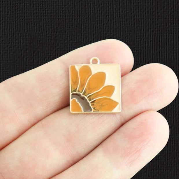 Breloques carrées dorées fleur de soleil, en alliage de zinc et émail. Parfait pour les bracelets, pendentifs, boucles d'oreilles, tirettes de fermeture éclair, signets et porte-clés !