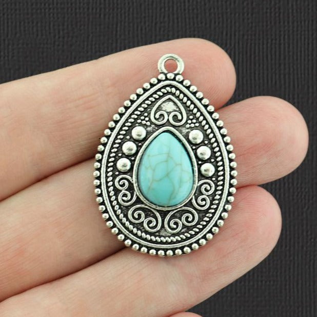 Breloques en forme de goutte de ton argent antique avec imitation turquoise, en alliage de zinc. Parfait pour les bracelets, pendentifs, boucles d'oreilles, tirettes de fermeture éclair, signets et porte-clés !