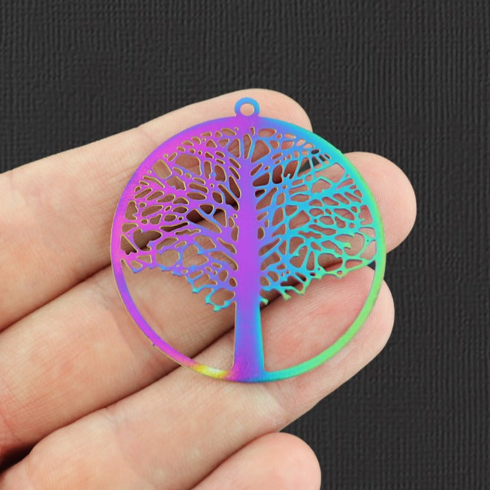 Arbre de vie en filigrane breloques en acier inoxydable arc-en-ciel galvanisées. Parfait pour les bracelets, pendentifs, boucles d'oreilles, tirettes de fermeture éclair, signets et porte-clés !