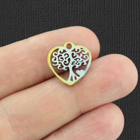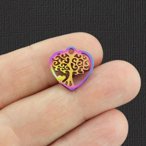 Breloques en acier inoxydable arc-en-ciel plaqué arbre de vie cœur. Parfait pour les bracelets, pendentifs, boucles d'oreilles, tirettes de fermeture éclair, signets et porte-clés !