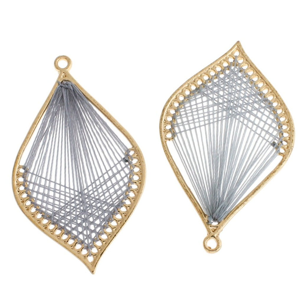 Pendentif feuille avec fil de polyester enroulé dans un alliage de métal doré, parfait pour les boucles d'oreilles, les pendentifs et plus encore !