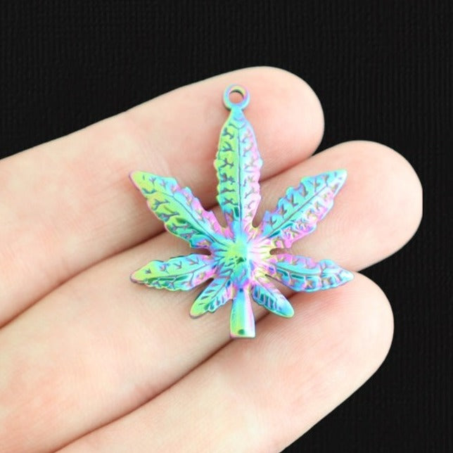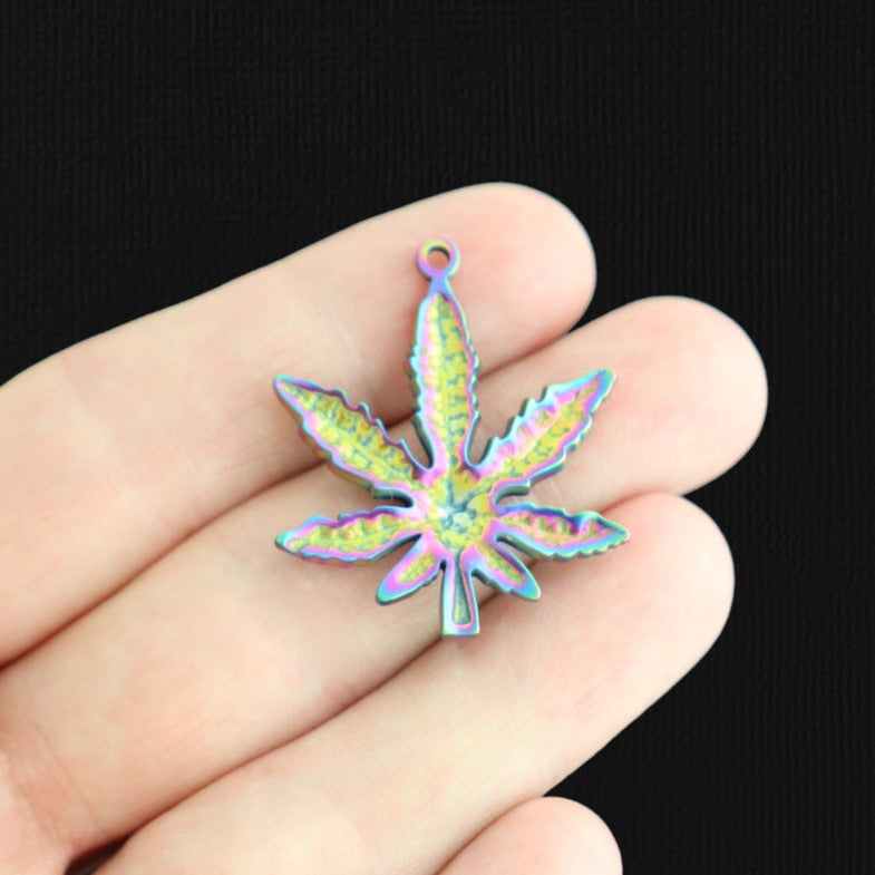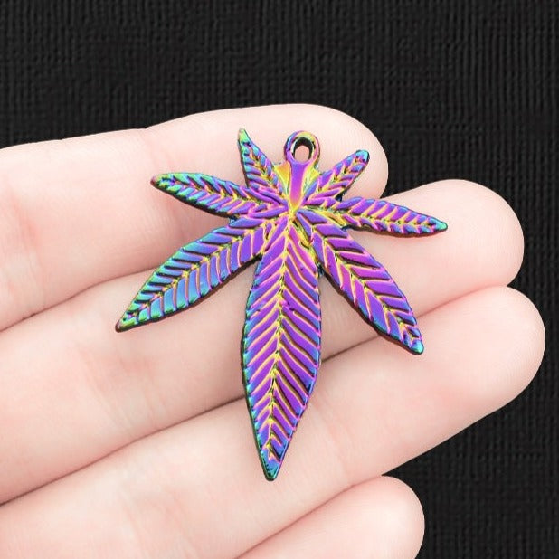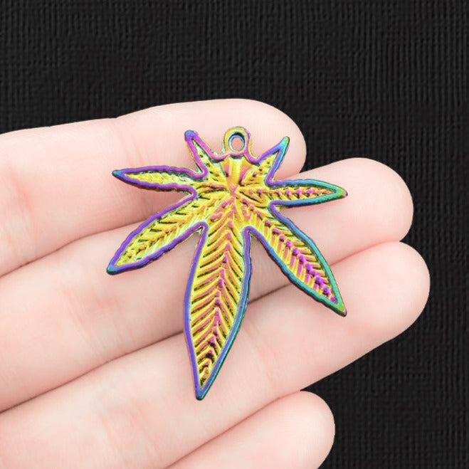 Breloques plaquées arc-en-ciel feuille de marijuana, en alliage de zinc. Parfait pour les bracelets, pendentifs, boucles d'oreilles, tirettes de fermeture éclair, signets et porte-clés !