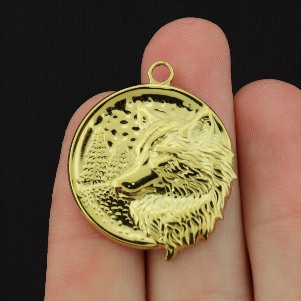 Wolf head moon design silver, gold or rainbow charms, in a 304 stainless steel metal.