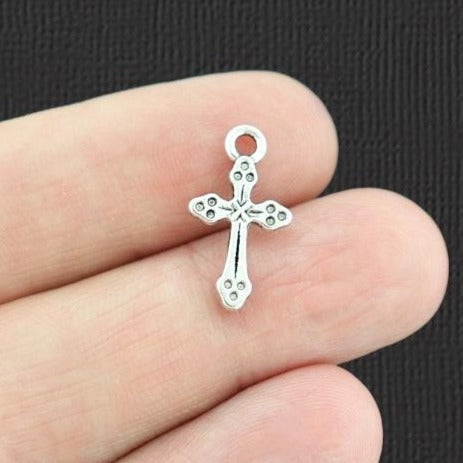 Breloques croix argentées antiques, en alliage de zinc. Parfait pour les bracelets, pendentifs, boucles d'oreilles, tirettes de fermeture éclair, signets et porte-clés !
