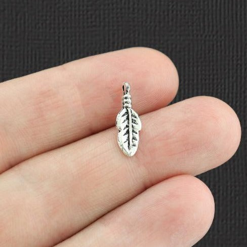Breloques plumes argentées antiques, en alliage de zinc. Parfait pour les bracelets, pendentifs, boucles d'oreilles, tirettes de fermeture éclair, signets et porte-clés !