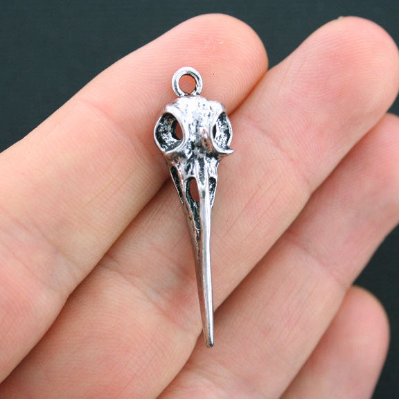 Breloques argentées antiques de crâne d'oiseau, dans un métal d'alliage de zinc. Parfait pour les bracelets, pendentifs, boucles d'oreilles, tirettes de fermeture éclair, signets et porte-clés !