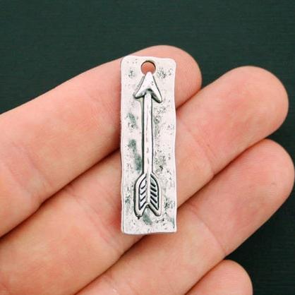 Plaque de flèche martelée breloques argentées antiques, dans un métal en alliage de zinc. Parfait pour les bracelets, pendentifs, boucles d'oreilles, tirettes de fermeture éclair, signets et porte-clés !