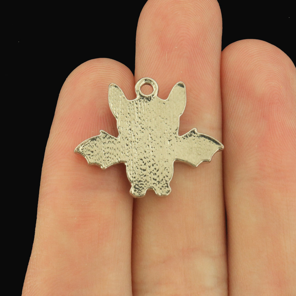 Be the life of the party with these glow in the dark smiling bat charms. They are made of silver tone alloy and finished with colorful enamel.