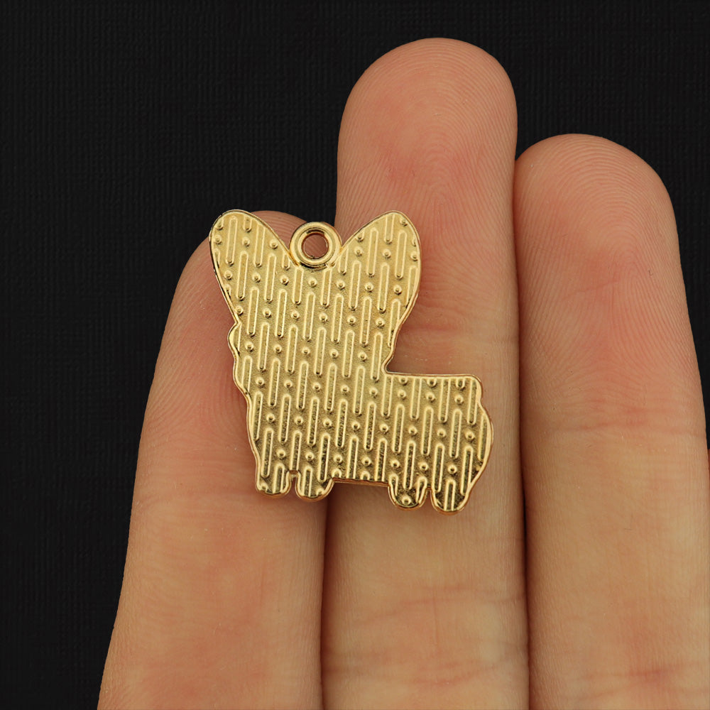 Black and white corgi type dog gold tone charms, in a zinc alloy metal and enamel.