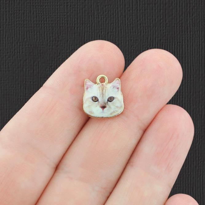 Breloques chat dorées, en alliage de zinc et émail. Parfait pour les bracelets, pendentifs, boucles d'oreilles, tirettes de fermeture éclair, signets et porte-clés !