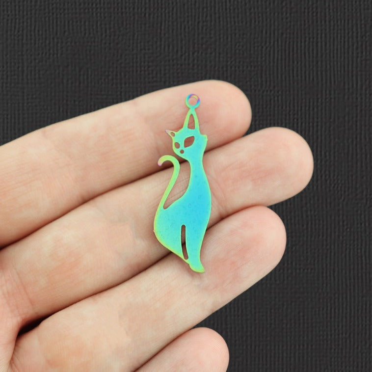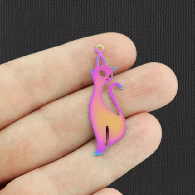 Breloques chat en acier inoxydable arc-en-ciel galvanisées. Parfait pour les bracelets, pendentifs, boucles d'oreilles, tirettes de fermeture éclair, signets et porte-clés !