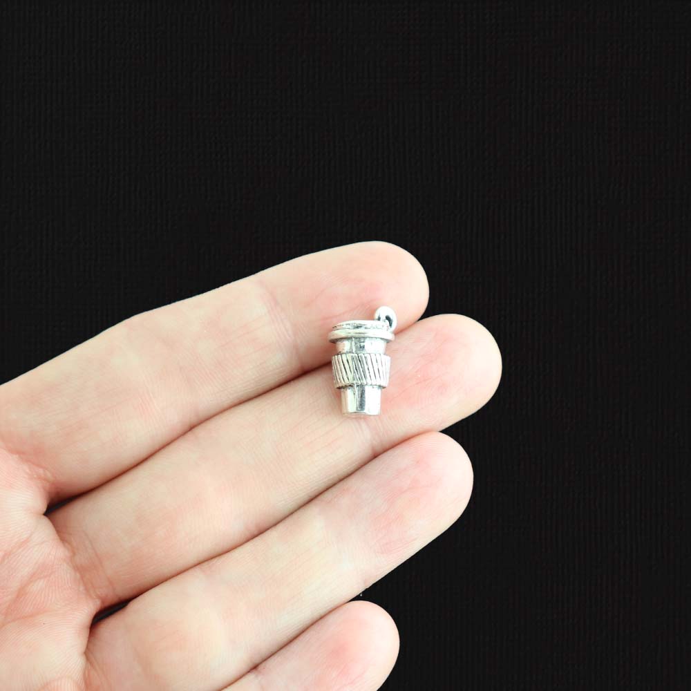 Tasse de voyage à café avec breloques argentées antiques, en alliage de zinc. Parfait pour les bracelets, pendentifs, boucles d'oreilles, tirettes de fermeture éclair, signets et porte-clés !
