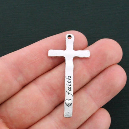 Faith Believe croix breloques argentées antiques, dans un métal en alliage de zinc. Parfait pour les bracelets, pendentifs, boucles d'oreilles, tirettes de fermeture éclair, signets et porte-clés !
