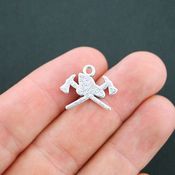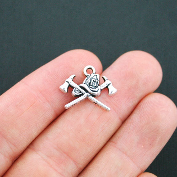 Breloques de ton argent antique symbole des pompiers, dans un métal en alliage de zinc. Parfait pour les bracelets, pendentifs, boucles d'oreilles, tirettes de fermeture éclair, signets et porte-clés !