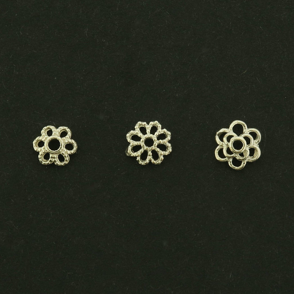 Check out these sterling silver bead caps with a flower design. Available in three different styles and sizes, they are sure to add some dazzle to your next beaded creation!