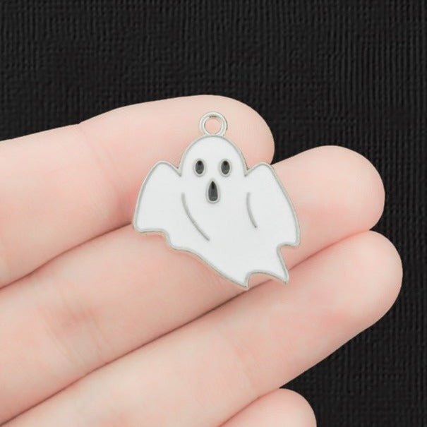 Breloques argentées fantômes d'Halloween, en alliage de zinc et émail. Parfait pour les bracelets, pendentifs, boucles d'oreilles, tirettes de fermeture éclair, signets et porte-clés !