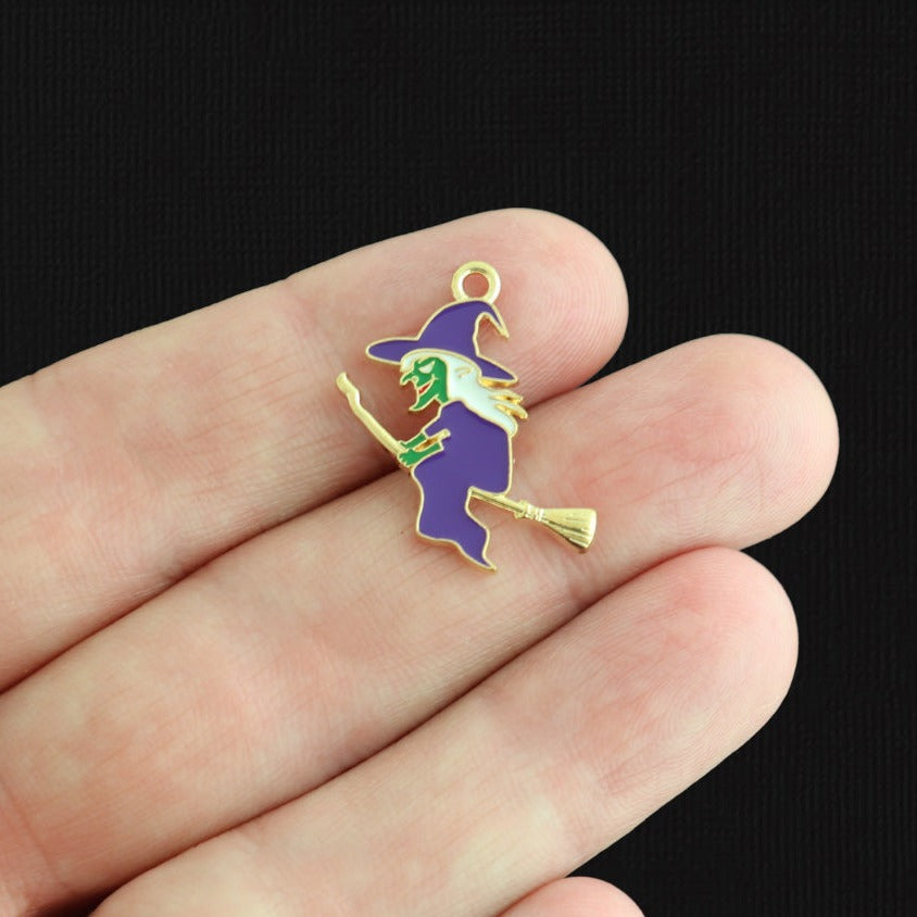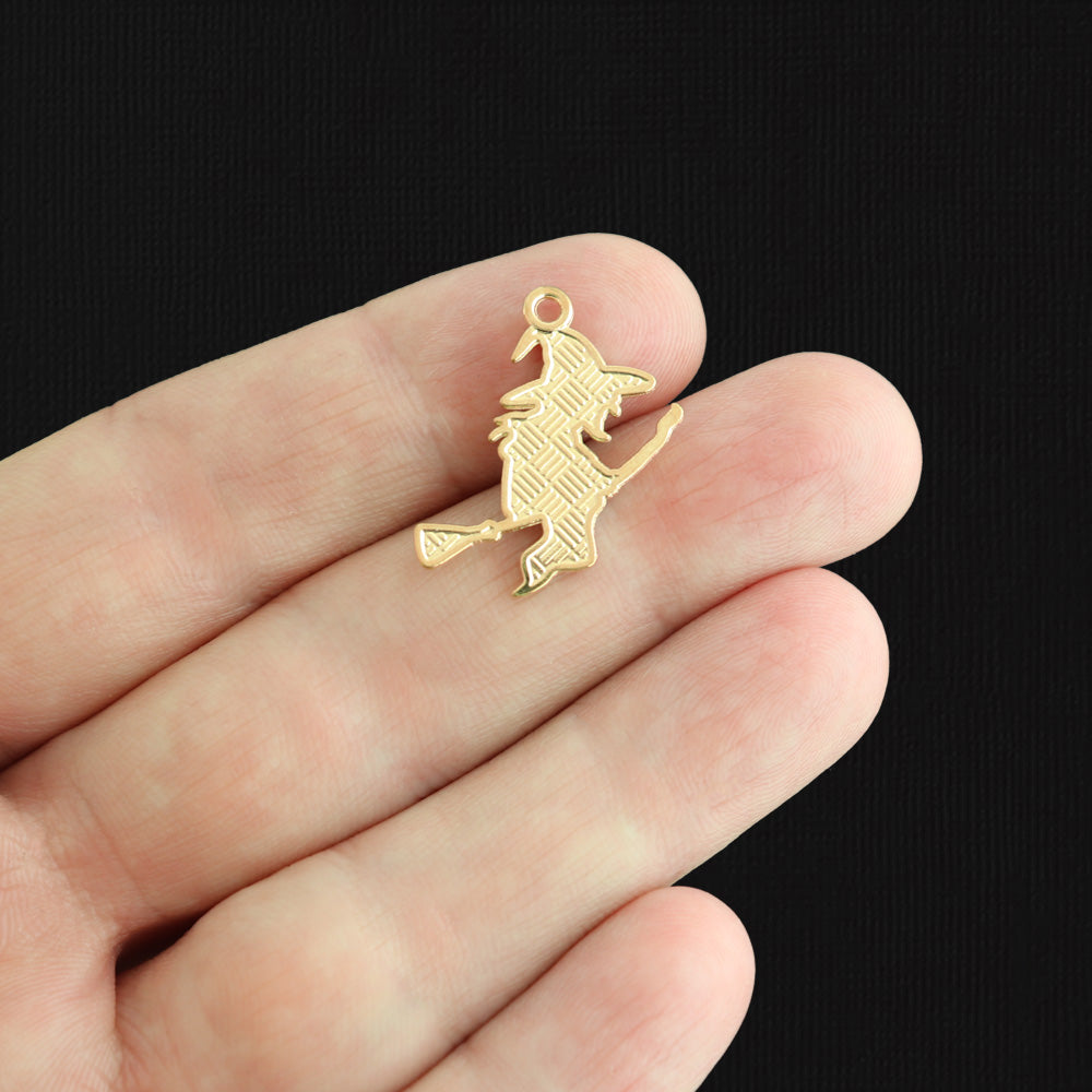 Charms de sorcière au balai dorés, en alliage de zinc et émail. Parfait pour les bracelets, pendentifs, boucles d'oreilles, tirettes de fermeture éclair, signets et porte-clés !