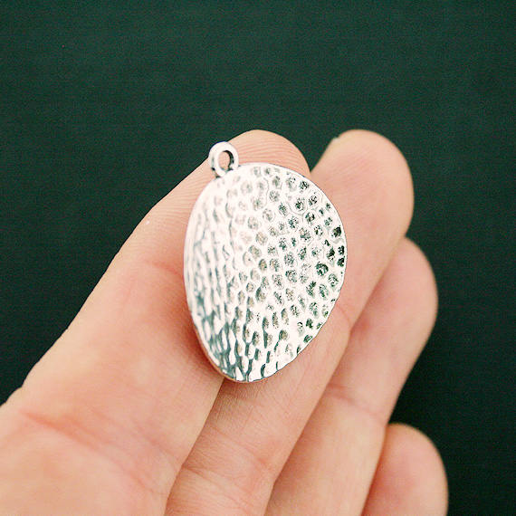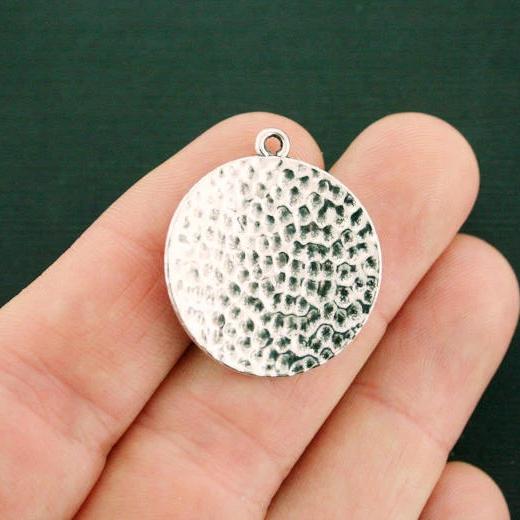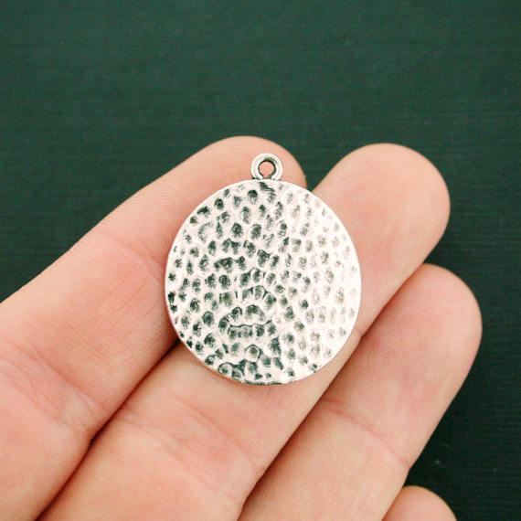Breloques rondes incurvées martelées de ton argent antique, dans un métal en alliage de zinc. Parfait pour les bracelets, pendentifs, boucles d'oreilles, tirettes de fermeture éclair, signets et porte-clés !