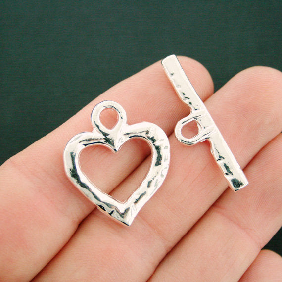Fermoirs à bascule en forme de cœur argentés, en alliage de zinc avec une finition martelée. Parfait pour les bracelets, colliers, pendentifs et porte-clés !