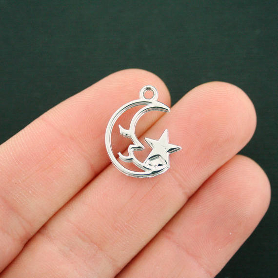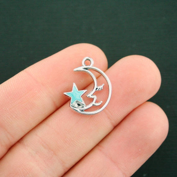 Breloques lune et étoile argentées, en alliage de zinc et émail. Parfait pour les bracelets, pendentifs, boucles d'oreilles, tirettes de fermeture éclair, signets et porte-clés !