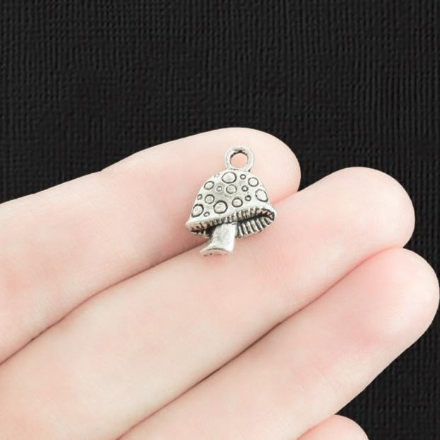 Breloques argentées antiques en forme de champignon, en alliage de zinc. Parfait pour les bracelets, pendentifs, boucles d'oreilles, tirettes de fermeture éclair, signets et porte-clés !