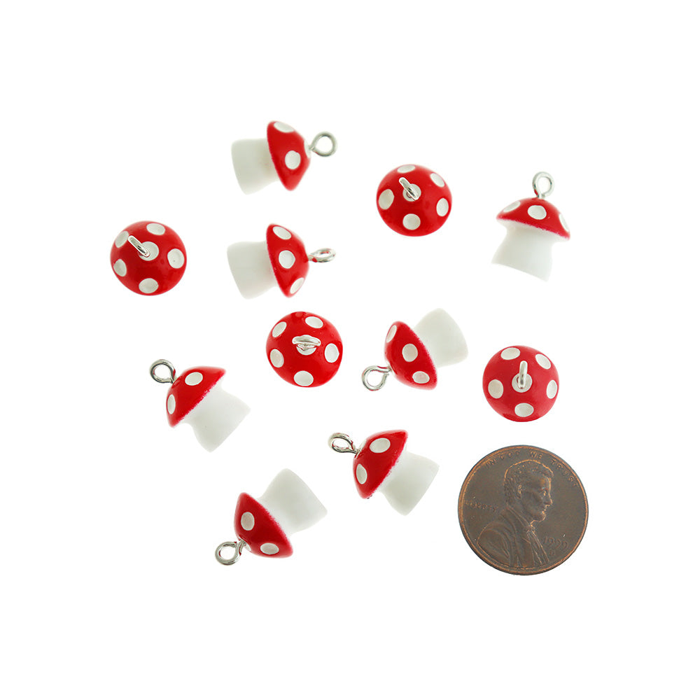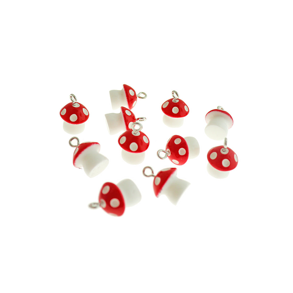 Breloques champignon rouge et blanc avec anneau en alliage de fer argenté, en résine. Parfait pour les bracelets, pendentifs, boucles d'oreilles, tirettes de fermeture éclair, signets et porte-clés !