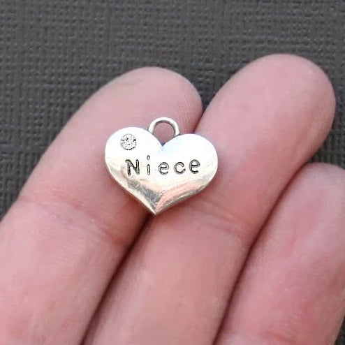 Breloques nièce de ton argent antique avec strass clairs incrustés, dans un métal en alliage de zinc. Parfait pour les bracelets, pendentifs, boucles d'oreilles, tirettes de fermeture éclair, signets et porte-clés !