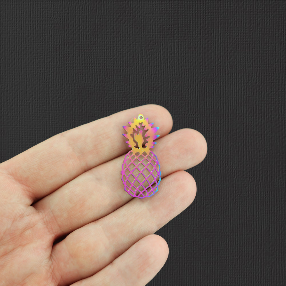 Breloques en acier inoxydable arc-en-ciel plaqué ananas. Parfait pour les bracelets, pendentifs, boucles d'oreilles, tirettes de fermeture éclair, signets et porte-clés !