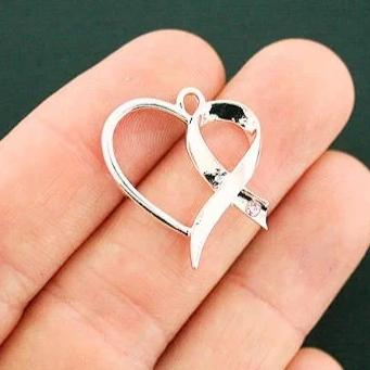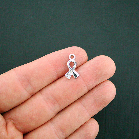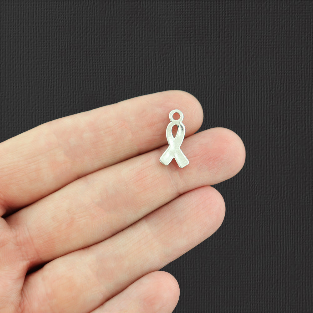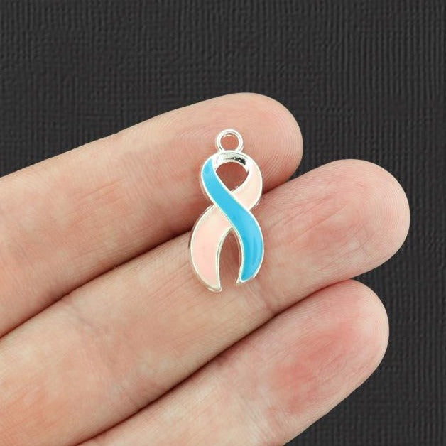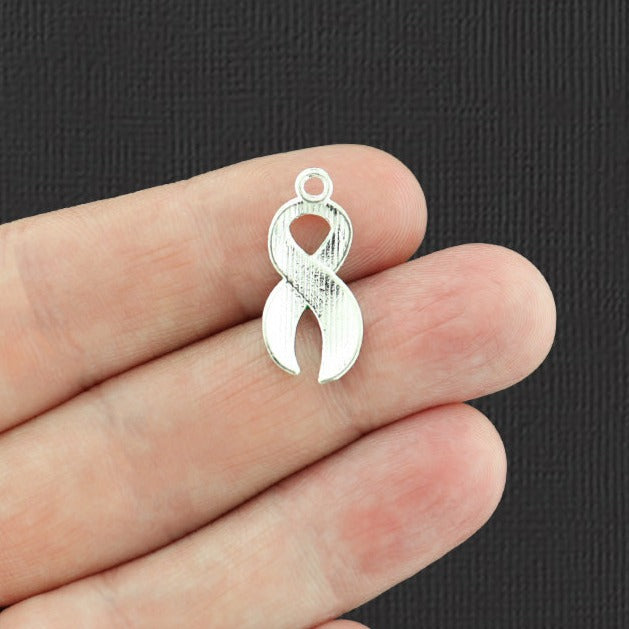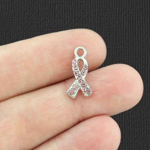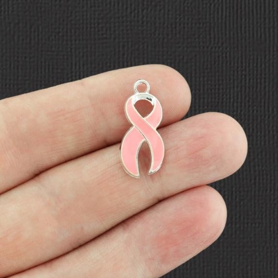 Breloques argentées ruban de conscience rose, en alliage de zinc et émail. Parfait pour les bracelets, pendentifs, boucles d'oreilles, tirettes de fermeture éclair, signets et porte-clés !