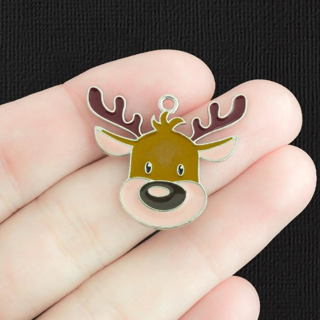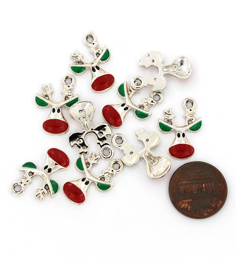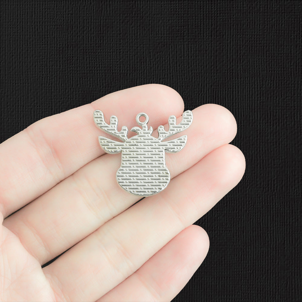 Breloques renne de Noël argentées, en alliage de zinc et émail. Parfait pour les bracelets, pendentifs, boucles d'oreilles, tirettes de fermeture éclair, signets et porte-clés !