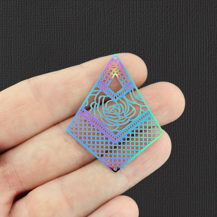 Breloques en acier inoxydable arc-en-ciel galvanisées en filigrane géométrique. Parfait pour les bracelets, pendentifs, boucles d'oreilles, tirettes de fermeture éclair, signets et porte-clés !