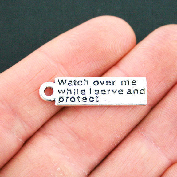 "Veille sur moi pendant que je sers et protège" des breloques argentées antiques, dans un métal en alliage de zinc. Parfait pour les bracelets, pendentifs, boucles d'oreilles, tirettes de fermeture éclair, signets et porte-clés !