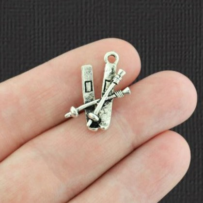 Breloques de ski argentées antiques, en alliage de zinc. Parfait pour les bracelets, pendentifs, boucles d'oreilles, tirettes de fermeture éclair, signets et porte-clés !