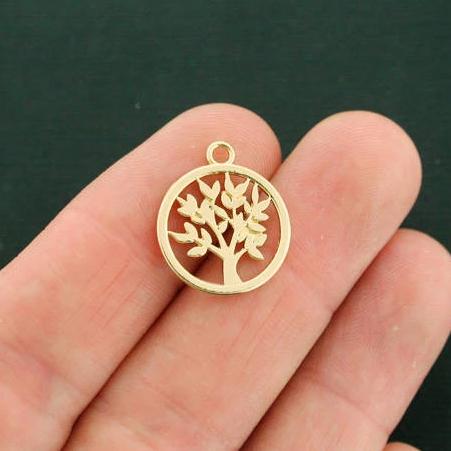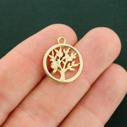 Breloques arbre de vie dorées, en alliage de zinc. Parfait pour les bracelets, pendentifs, boucles d'oreilles, tirettes de fermeture éclair, signets et porte-clés !