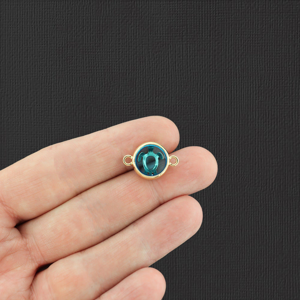 Breloques dorées connecteur tortue bleu océan, en alliage de zinc et émail. Parfait pour les bracelets, pendentifs, boucles d'oreilles, tirettes de fermeture éclair, signets et porte-clés !
