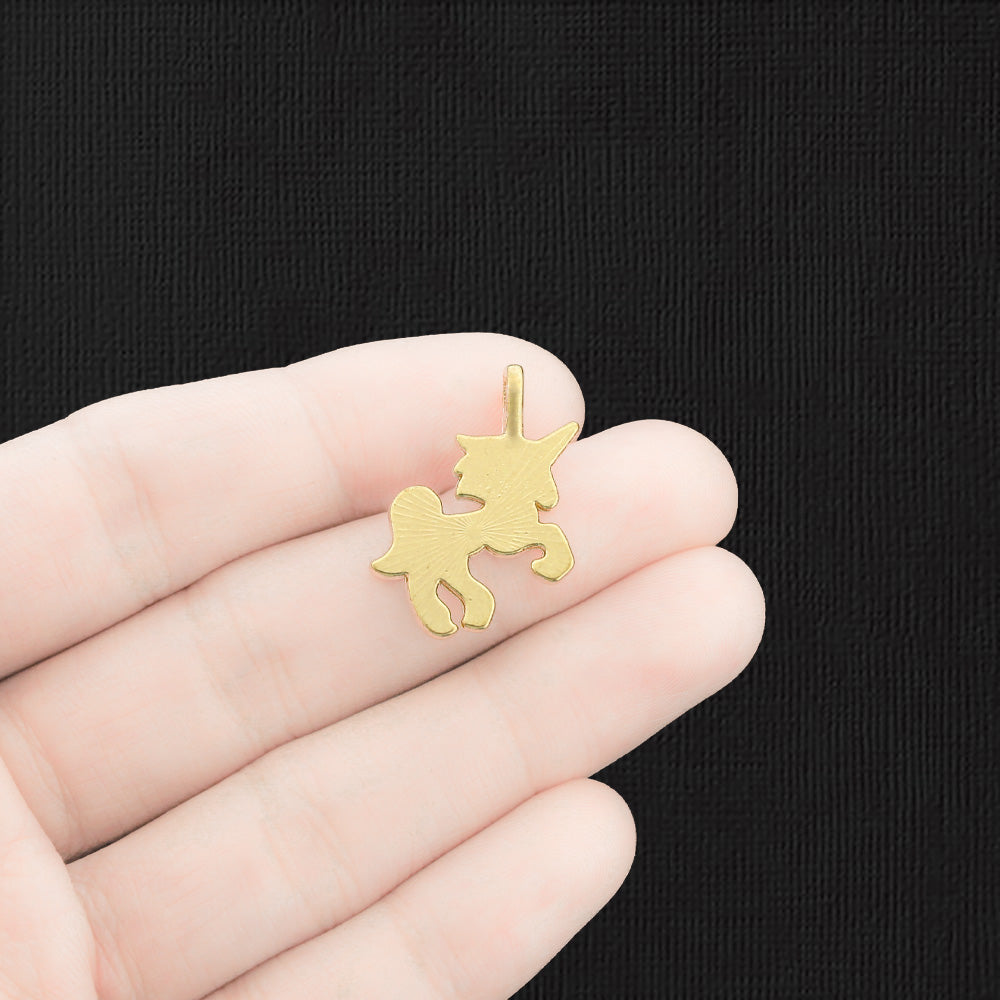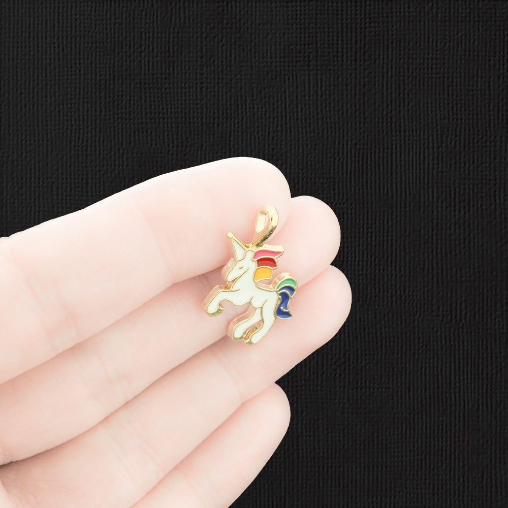 Breloques licorne dorées, en alliage de zinc et émail. Parfait pour les bracelets, pendentifs, boucles d'oreilles, tirettes de fermeture éclair, signets et porte-clés !
