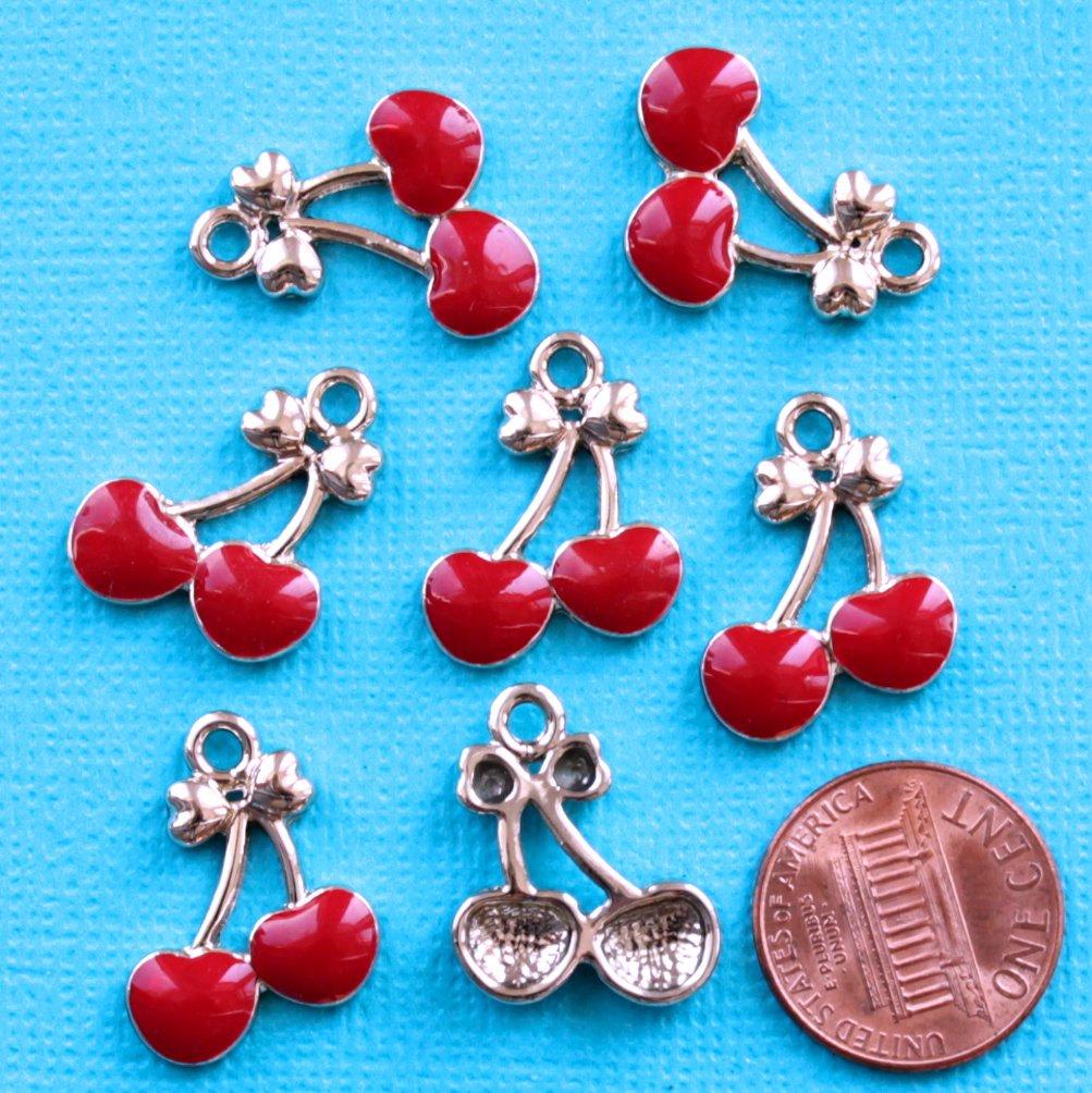 Breloques ton argent cerise, en alliage de zinc et émail. Parfait pour les bracelets, pendentifs, boucles d'oreilles, tirettes de fermeture éclair, signets et porte-clés !